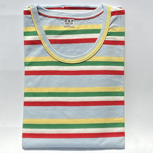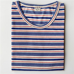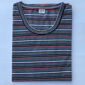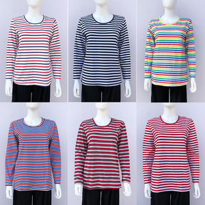 代件中高齢者女装春装長袖tシャツ丸首綿質ゆるい老人縞シャツ
