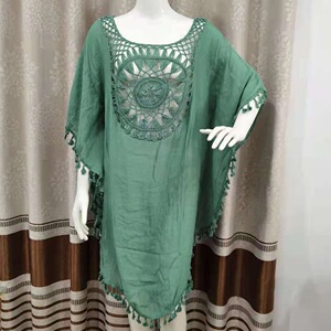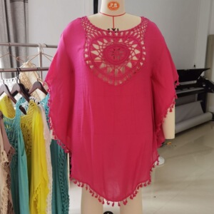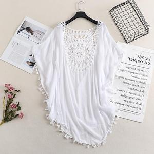 クロスボーダーの新型セクシーな肩の透かし彫りのゆったりした大きいサイズのフリンジビキニins風の外はビーチのブラウスの上着に乗ります。