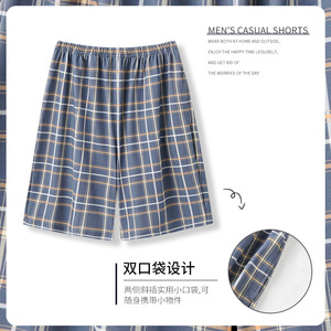 寝ズボン男夏純綿薄手のゆったりしたパンツ男性夏純綿大きいサイズのカジュアルな家の半ズボン
