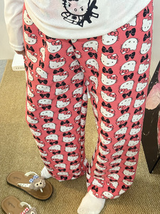 長ズボン-ピンク英語kt猫 (雲綿生地)
