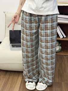 ズボン - 黒と茶色のチェック柄のリボンのダークバージョン (Yunduo 綿生地)