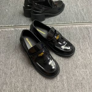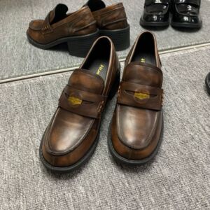 在庫あり、即発送!張元英と同じスタイルの靴、ファッショナブルで多用途なミウミウのゴールドコイン厚底ローファー、女性用スモールレザーシューズ