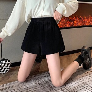 2024秋冬の大きいサイズの太ったmmの広脚のズボンの女性の高腰の百合のコーデュロイのショートパンツの小さい子供のカジュアルな底の靴のズボン
