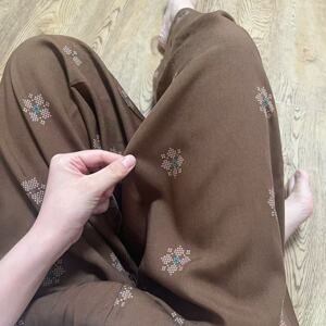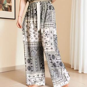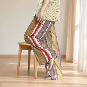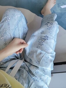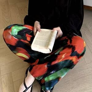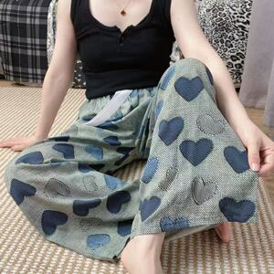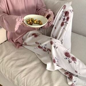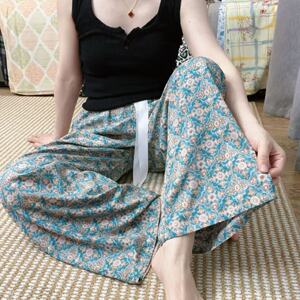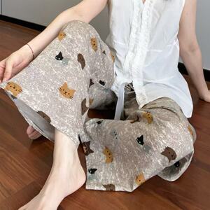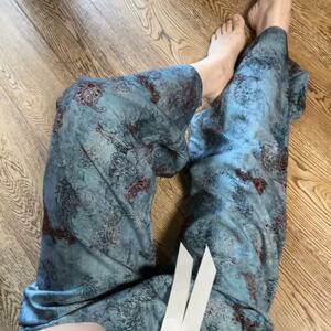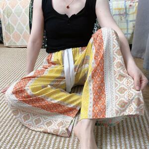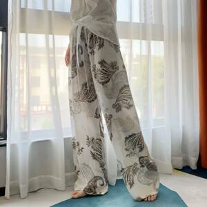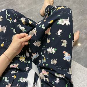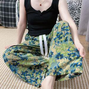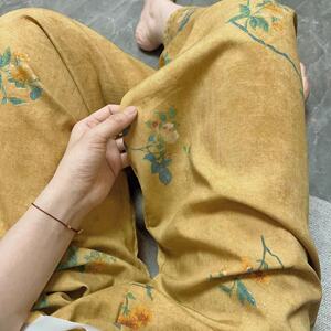 新作のロング丈コットンシルクパジャマパンツ、女性用、大きいサイズ、カジュアルホームパンツ、夏の散歩用、中国風、レトロ、花柄、外出着としても着用可能