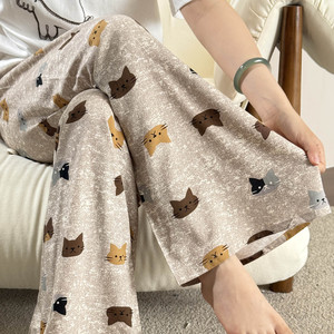 MJ ワイドレッグ パンツ - ブラウン ヒョウ柄